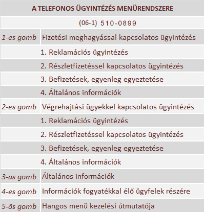 (+36-1) 510 0899 telefonos ügyintézés menürendszere